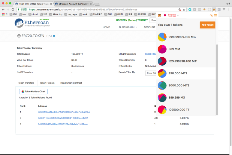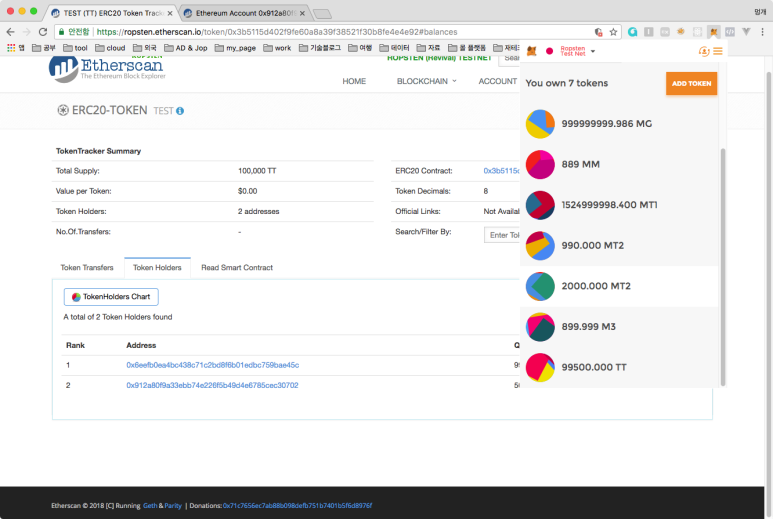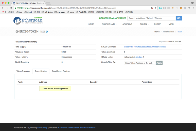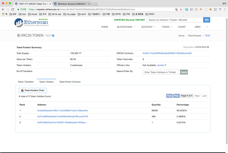 (추가적으로 etherscan에서 토큰 Holder 적용이 좀 느린건지 원래 잘 안뜨는 건지 확인중)