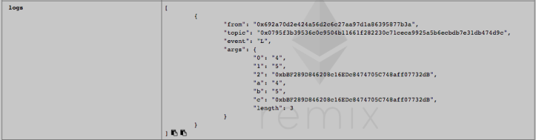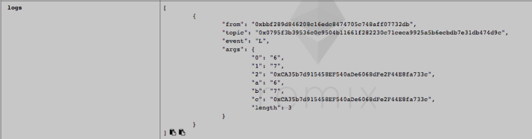 마찬가지로 logs 부분을 살쳐보면 a와 b는 callTest를 호출할 때 전달된 인자가 발생합니다. 그런데 c는 Sample2의 컨트랙트 주소가 표시됩니다. 그 이유는 Sample1로 배포된 컨트랙트를 Sample2가 호출했기 때문입니다.