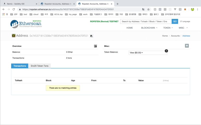 이더를 전송받은 계정또한 이더스캔에서 확인 가능합니다.