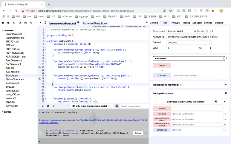 이전 버전처럼 사용하면 앞의 이미지처럼 에러가 발생하게 됩니다. address payable로 변환을 해야 정상적으로 컴파일이 됩니다.