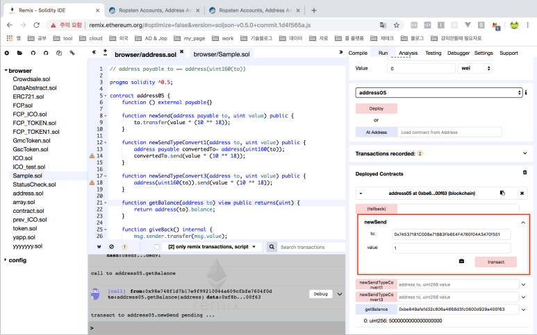 이번글에서는 solidity로 개발한 스마트 컨트랙트에서 다른 계정으로 이더를 전송하는 방법에 대해서 알아보겠습니다. 이번글도 0.5 버전을 기준으로 작성됩니다. 물론 이전 버전과 어떤 차이가 있는지도 함께 알아보겠습니다.