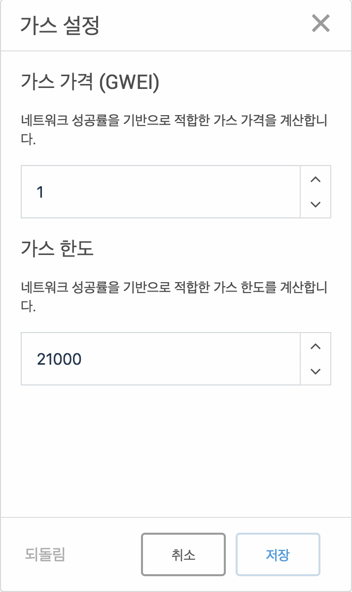 해결 방법은 gas limit(가스한도)를 올려서 트랜잭션을 발생하면 됩니다. 앞의 이미지는 metamask 기준이고 사용하는 지갑에서 gas limit(가스한도)를 더 높여주고 실행하면 됩니다.