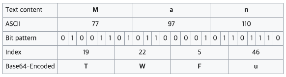 base64는 64진법을 의미합니다. Base64는 주어진 문자를 아스키 코드로 변환한 후 2진수로 변환합니다. 그리고 6비트씩 잘라서 나온 값을 base64표를 참고하여 변환한 결과가 base64인코딩 결과입니다.